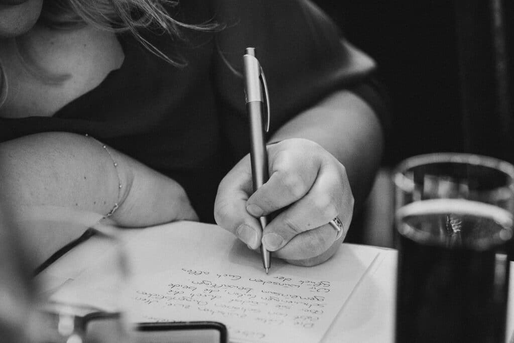 Nicht nur Fotos sind eine tolle Möglichkeit, um Momente festzuhalten und Erinnerungen zu schaffen. Auch geschriebene Worte sind eine perfekte Möglichkeit, um dem Brautpaar etwas zu hinterlassen. Bei Janinas und Tims Hochzeit haben wir unseren Kartenständer Karl als Gästebuch integriert. Dazu haben wir weiße, blanko Postkarten(*) und verschiedene Stifte (*) ausgelegt und die Gäste konnten ihre Wünsche, Gedanken und Worte auf den Postkarten verewigen. Fotos, die mit einer Polaroidkamera (*) gemacht wurden, konnten auch direkt auf Karl platziert werden.