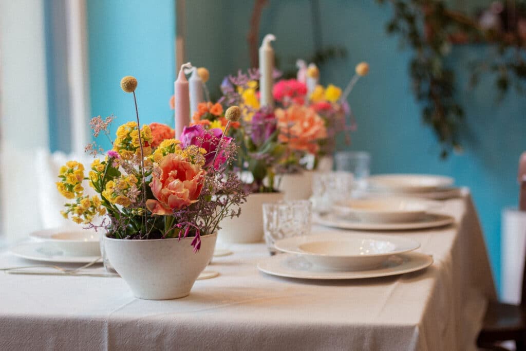 Hast Du bei Pinterest schonmal nach nachhaltigen Dekokonzepten für Dein Fest gesucht? Die Ausbeute ist ziemlich einseitig: Grüne und eher farblose Naturmaterialien dominieren die Pins zum Thema „Nachhaltig Feiern“. Wir lieben Farbtupfer und Dekokonzepte, die mehr Charakter haben. Aber auch das Thema Nachhaltigkeit liegt uns am Herzen und ist Teil unserer Unternehmensvision. Deshalb haben wir mit @Florel und dem @impactcafecgn ein modernes und gleichzeitig buntes Dekokonzept zum nachhaltigen Feiern entwickelt!