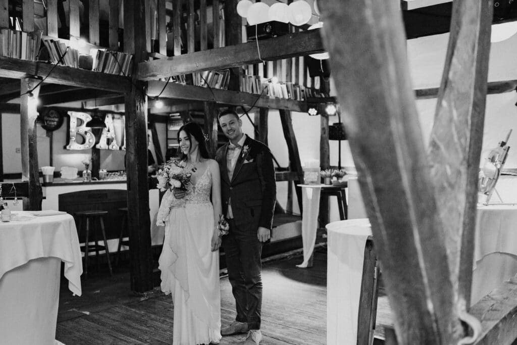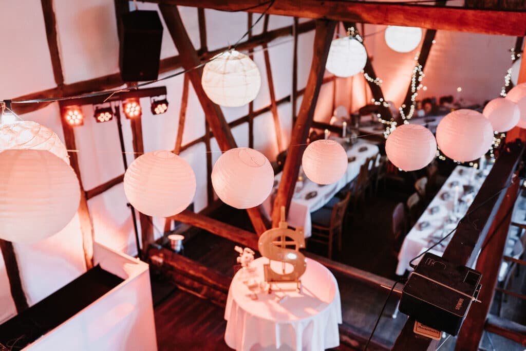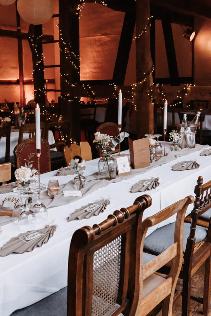 Eine Scheunenhochzeit ist die perfekte Wahl für Alle die es rustikal lieben und die für ihre Hochzeit Romantik und Landleben kombinieren möchten. Die rustikalen Holzbalken des Gasthaus Bockenbusch und die elegante Dekoration aus roségold, eucalyptus und cremeweiß sind genau die richtige Mischung für eine charmante und rustikale Atmosphäre, die gleichzeitig romantisch ist. Dafür eignen sich auch besonders gut unsere Lichterketten, wie zum Beispiel die 50 Meter lange Lichterkette Lasse.